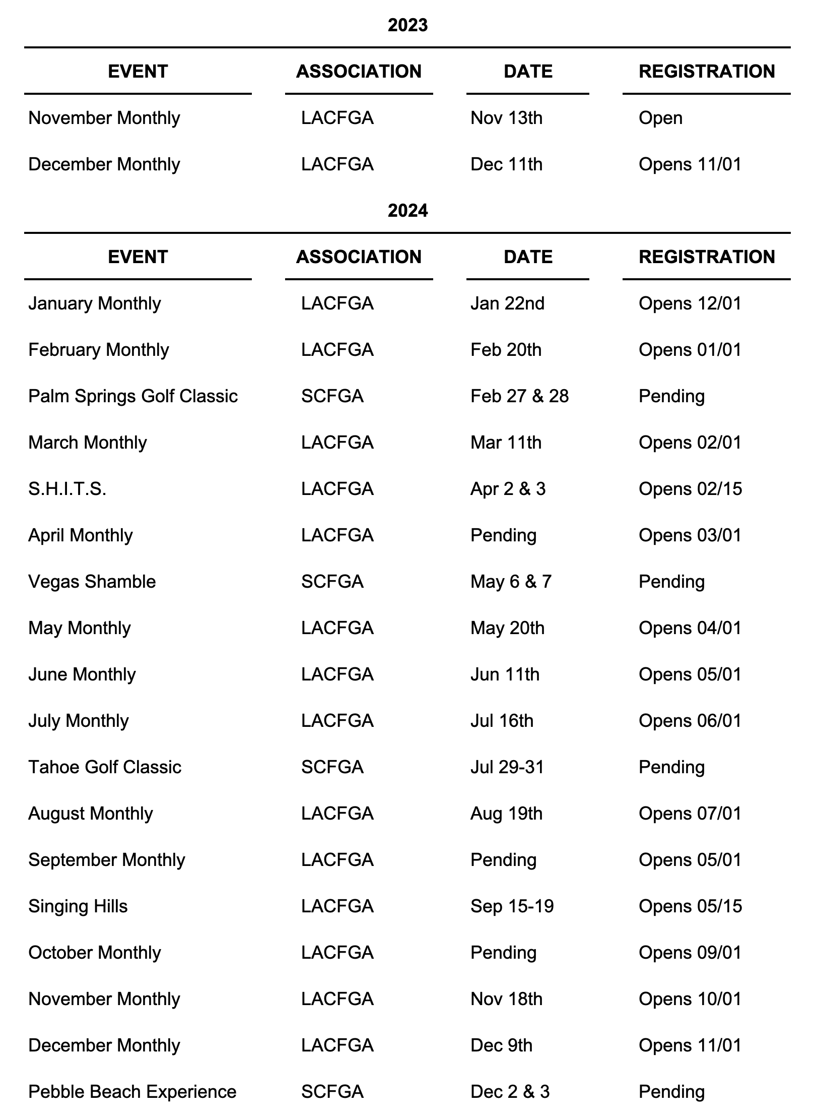 SINGING HILLS WILL BE A REAL TEST IN 2024 AS THEY ARE CHANGING THE ON SITE HOTEL INTO DORMS FOR THE NEWLY ACQUIRED SOCCER TEAM AND TURNING THE PAR THREE COURSE INTO PRACTICE FIELDS. THE BOARD IS IN CLOSE CONTACT WITH THE FOLKS AT SINGING HILLS
