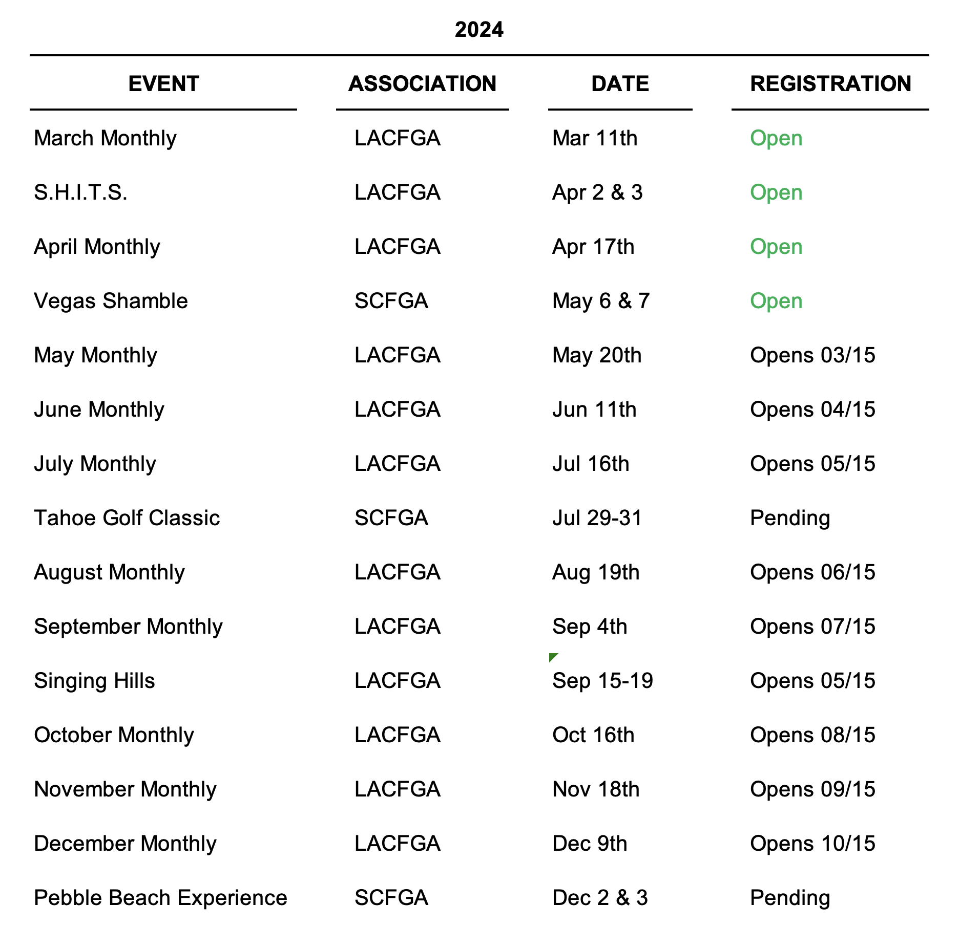 Registration for the April Monthly at Los Serranos G.C. is open and is 25% filled.