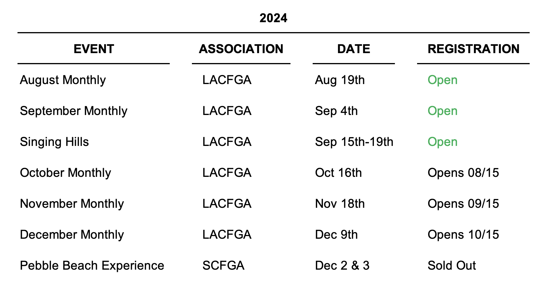 Singing Hills has been a LACFGA tradition since 1968!