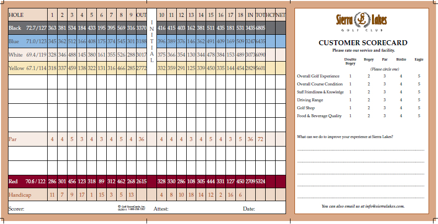 Tuesday, June 10th with an 8:00 shotgun start, takes us back to an LACFGA favorite, Sierra Lakes. The Open players will be playing the Blue Tees at 6435 yards with a slope of 71.2/124 and the Seniors will be playing the Yellow Tees at 5601 yards with a slope of 67.2/113. The driving range will be open, in the past range balls were included, we will see if they still are. The restaurant will be open at 7:00, there will be a beverage cart on the course. The course requires our player count on June 3rd. Don't wait, sign up now!