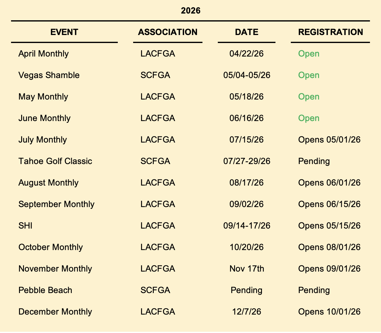 The SCFGA Vegas Shamble is May 4th & 5th. If you enjoyed the Shamble Format that we played last month at California C.C. come out and join us. We play the Revere golf